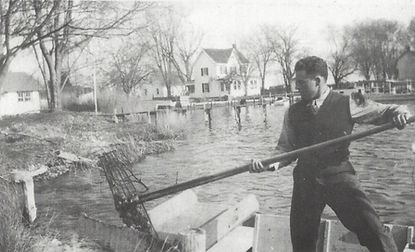 ABOVE: A waterman with his oyster tongs in 1944, on the eastern shore of Rockhold Creek, near Drum Point.